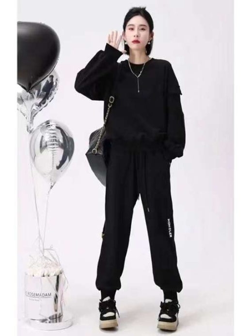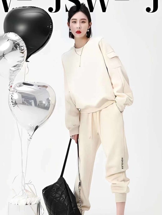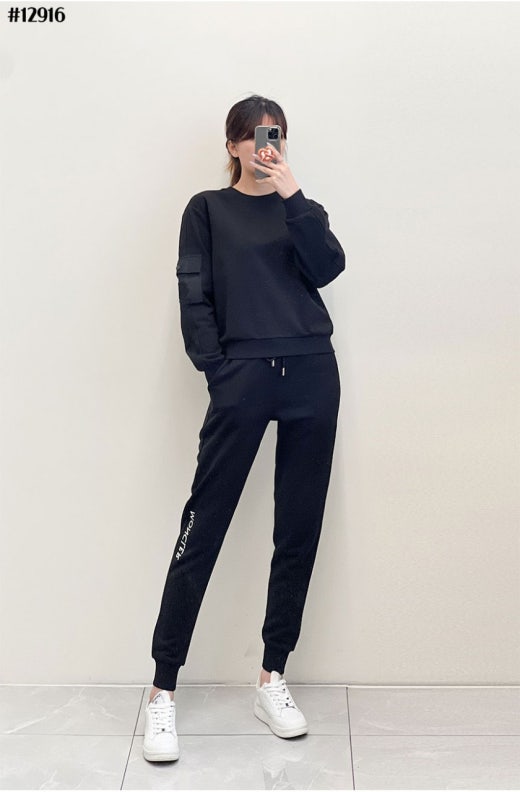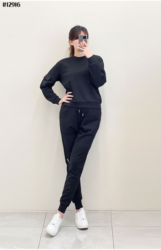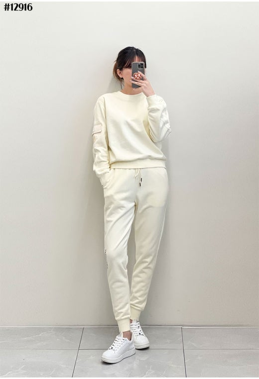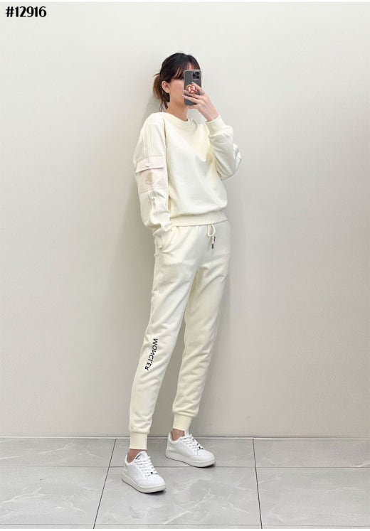 몽클레어 레터링 자수 로고 포켓 맨투맨 & 조거 팬츠 셋 여성용(2컬러)