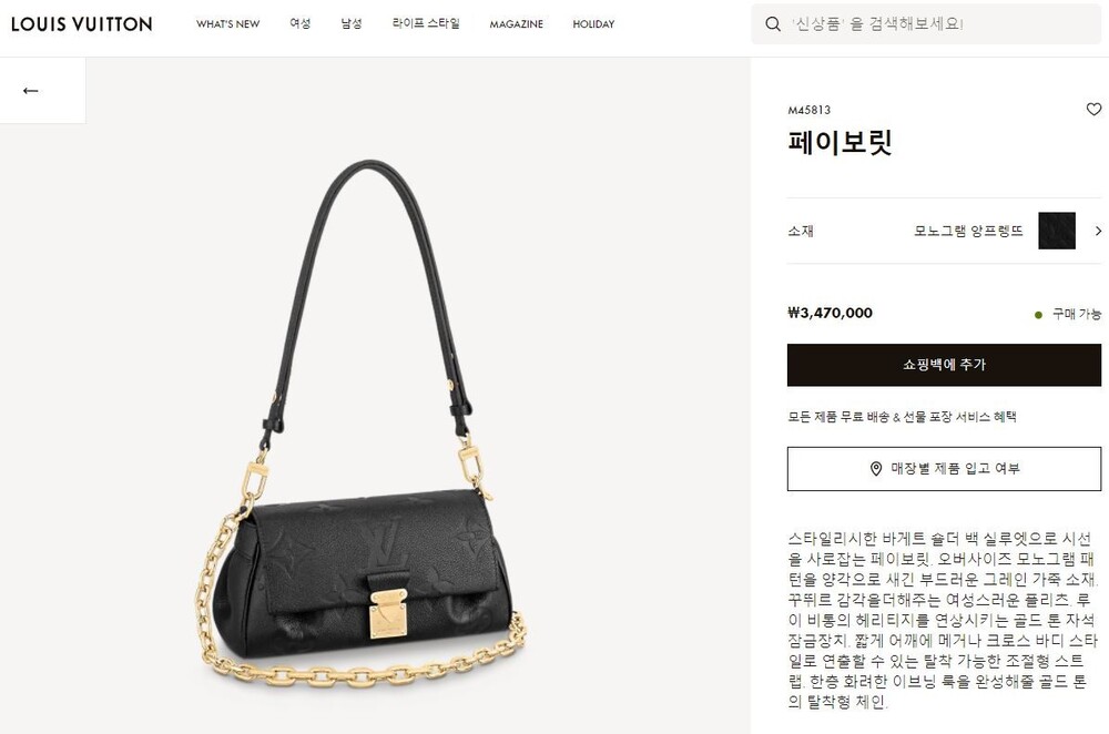 루이비통 페이보릿 바이컬러 모노그램 앙프렝뜨 블랙 여성용(1컬러)