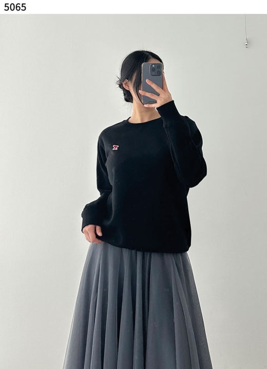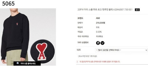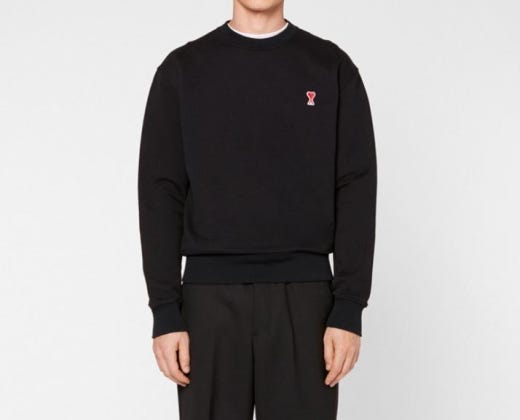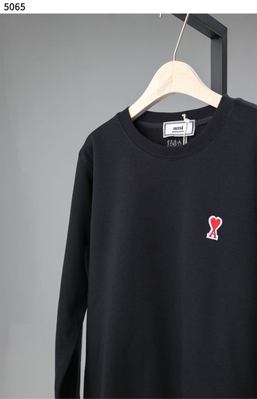 아미 스몰 하트 로고 기모 맨투맨 블랙 남여공용(1컬러)