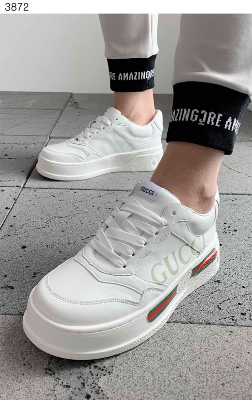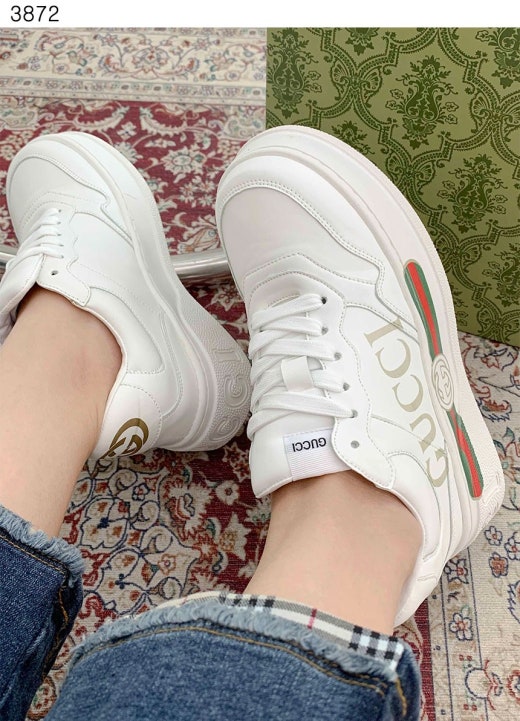 구찌 띠 로고 베이직 라이톤 스니커즈 화이트 남성용(1컬러)
