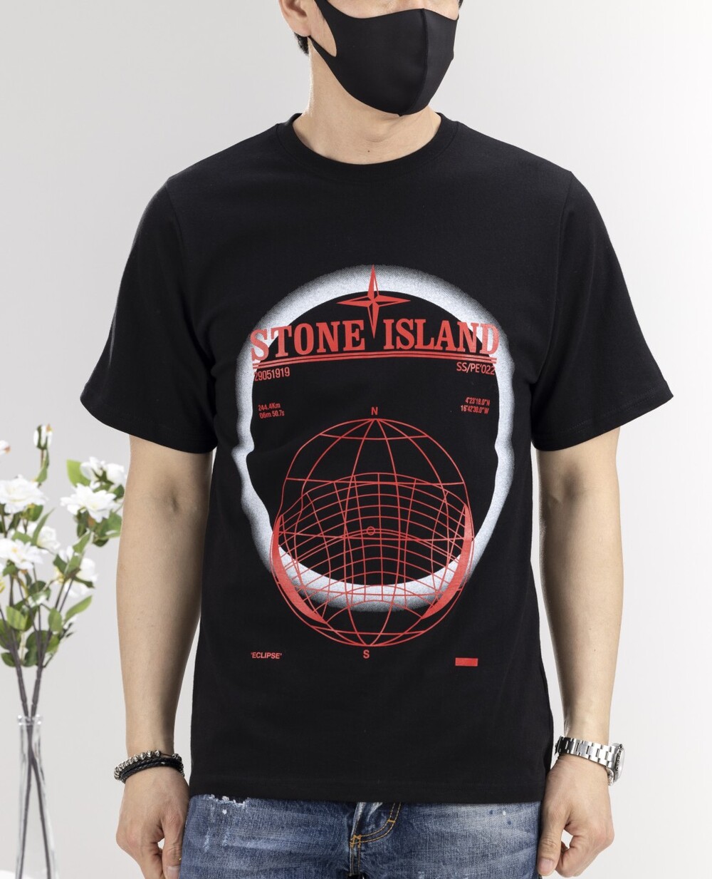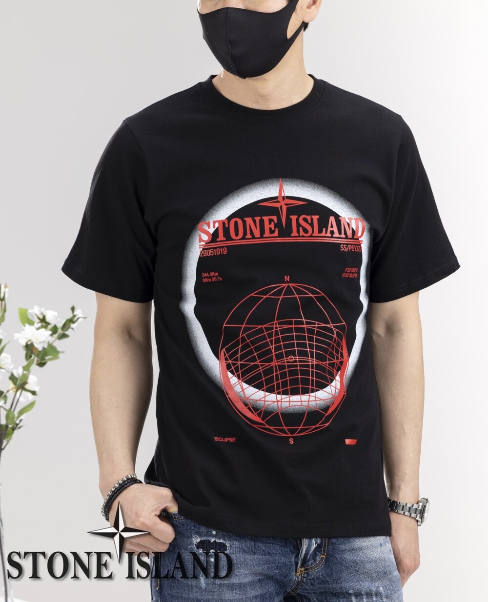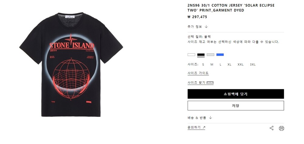 스톤아일랜드 Solar Eclipse Two 로고 라운드 반팔티셔츠 남성용(2컬러)