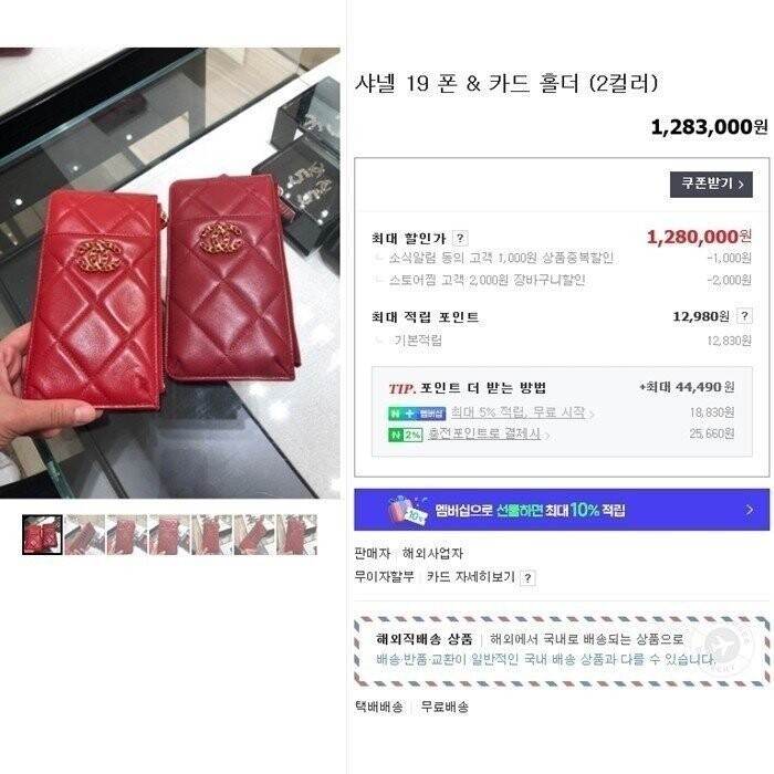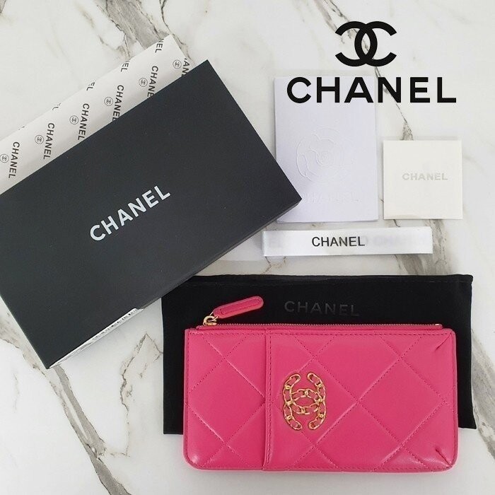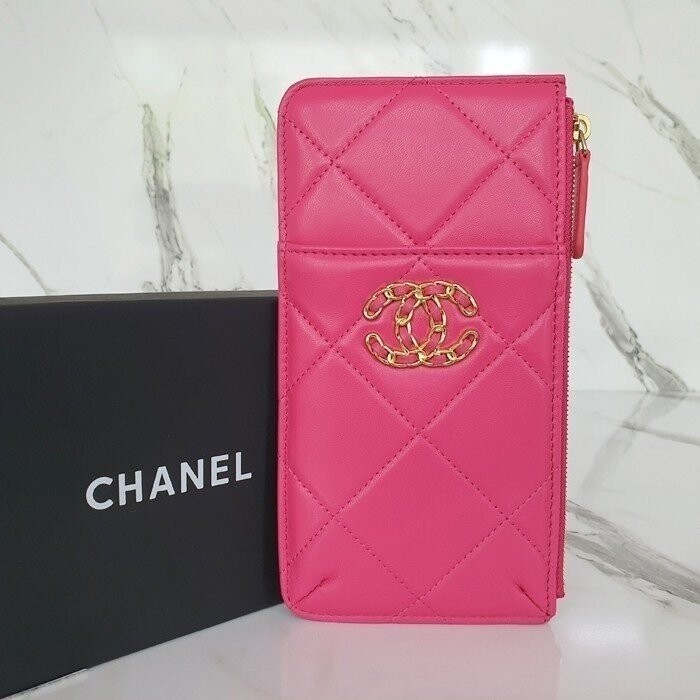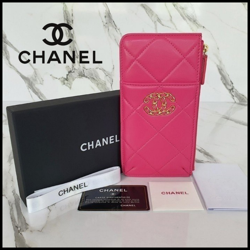 샤넬 19 폰 & 카드지갑 홀더 파우치 핑크 여성용(1컬러)