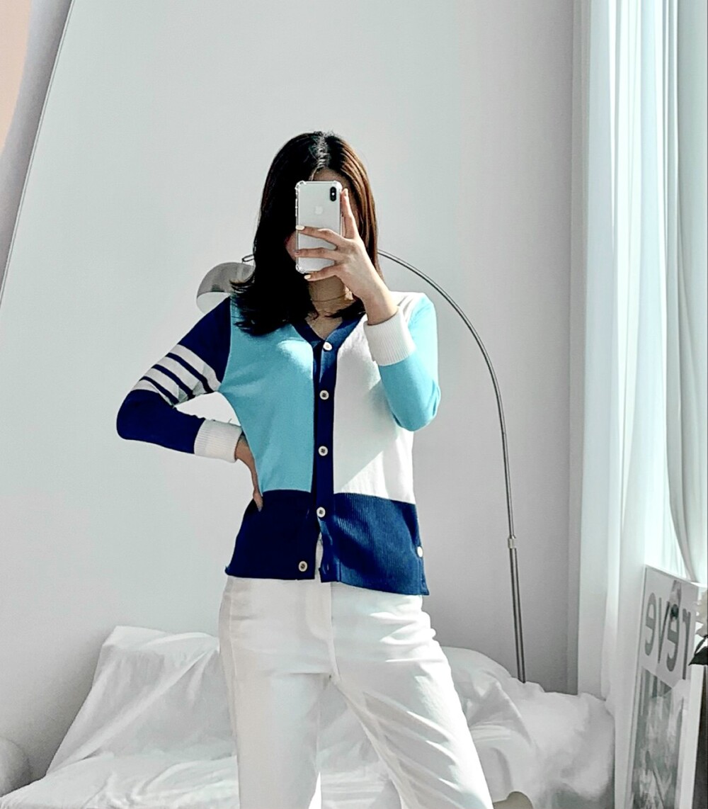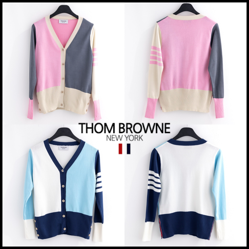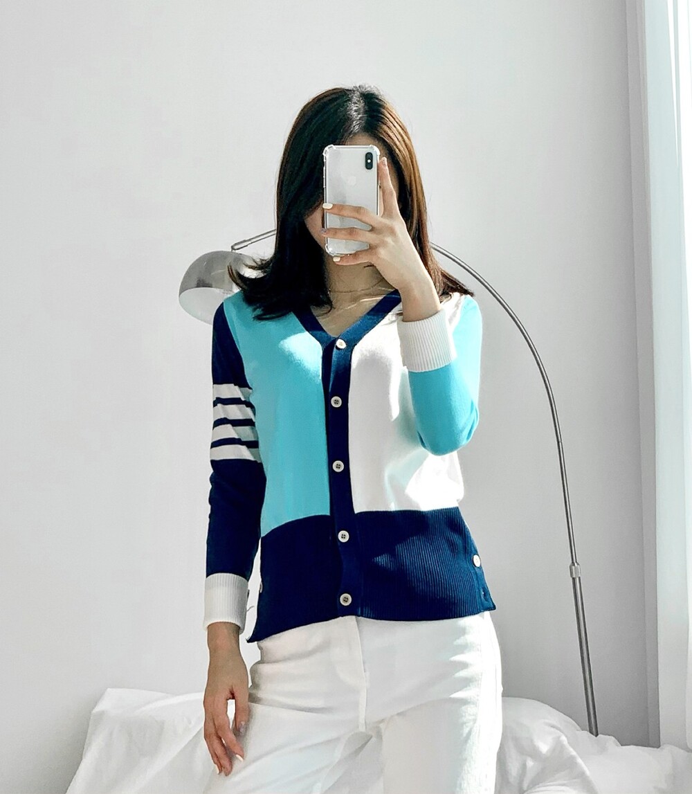 톰브라운 모노톤 배색 브이넥 가디건 여성용(2컬러)