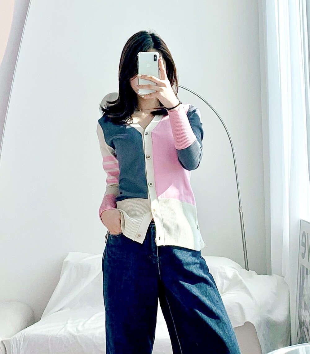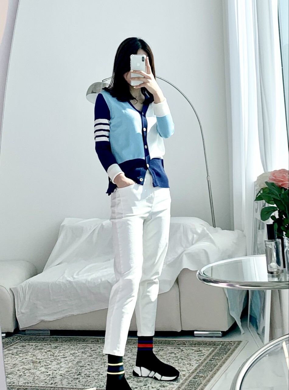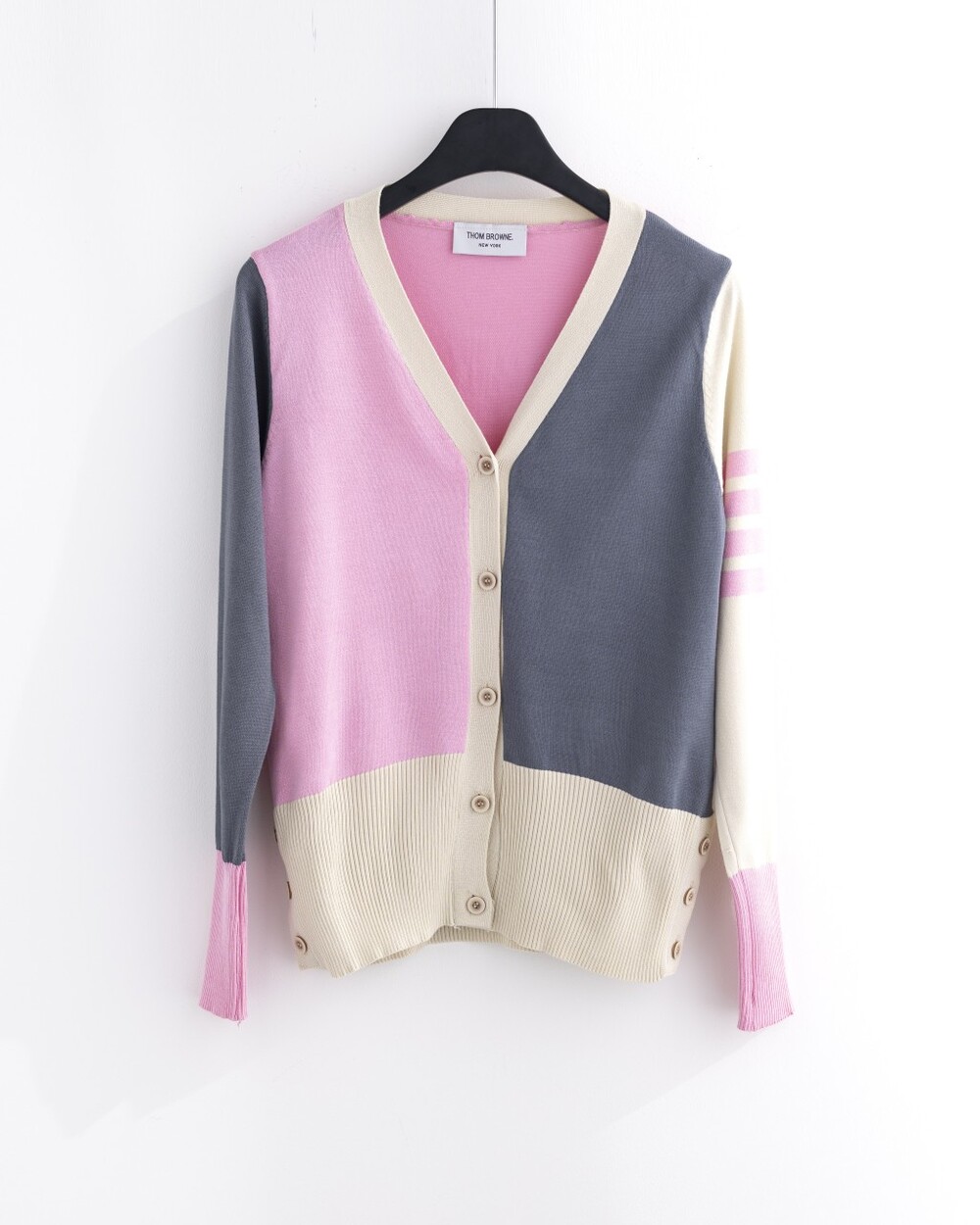 톰브라운 모노톤 배색 브이넥 가디건 여성용(2컬러)