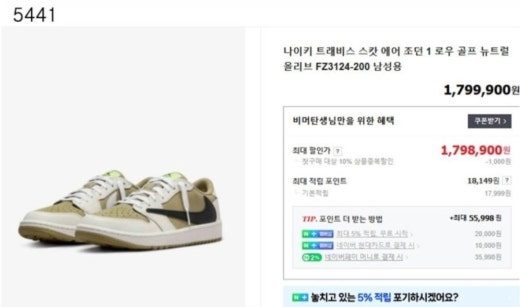 나이키 에어조던1 로우 골프 x Travis Scott 트래비스 스캇 Neutral Olive 네츄럴올리브 남성용(1컬러)