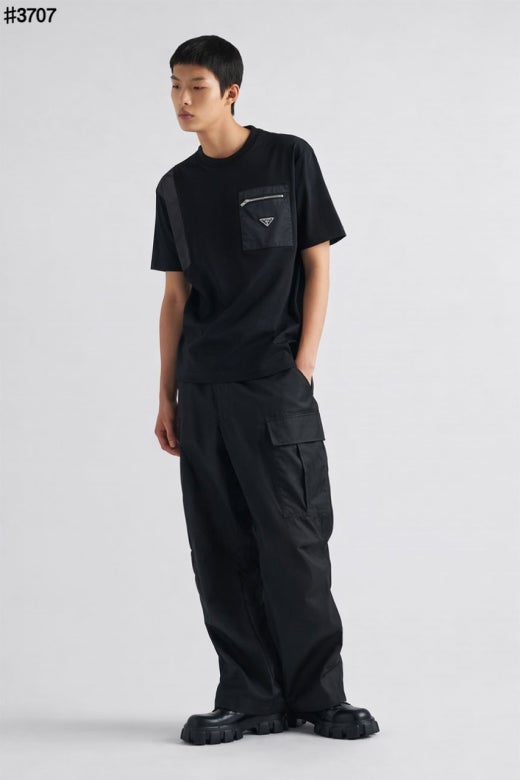 프라다 나일론 포켓 믹스 코튼 숏 슬리브 티셔츠 남성용(2컬러)