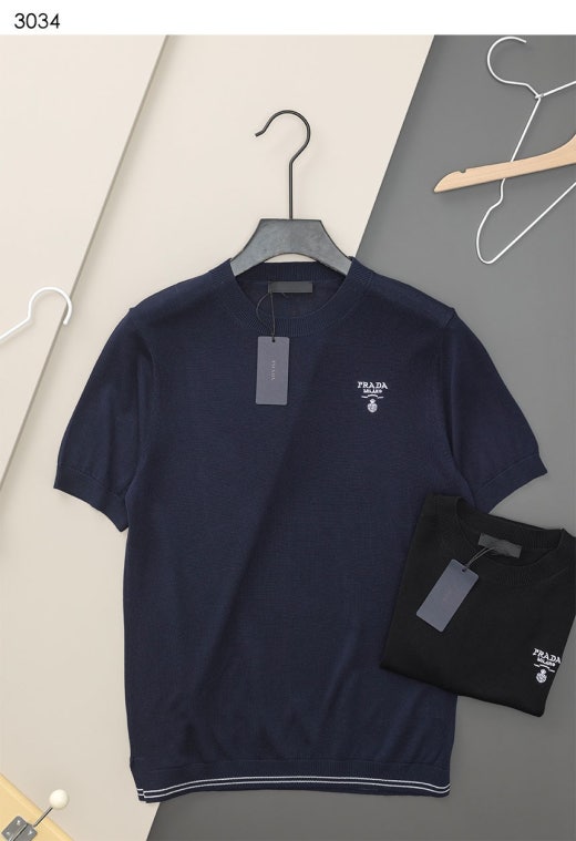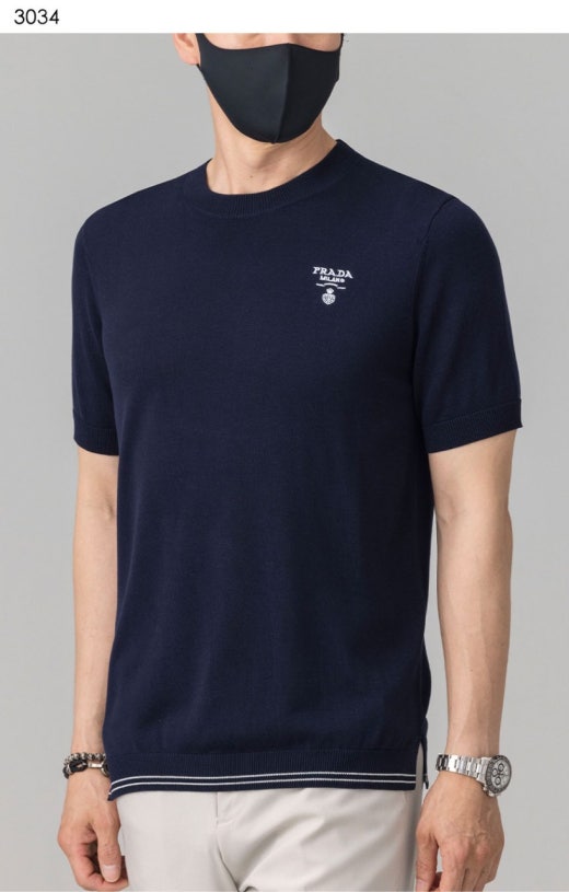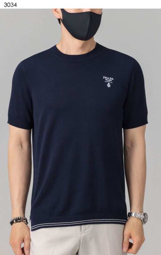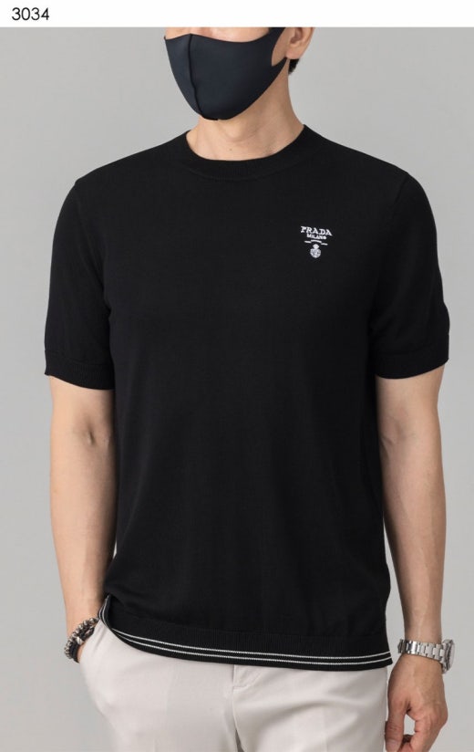 프라다 트라이앵글 자수로고 고급실켓 썸머니트 남성용(2컬러) 📢세일