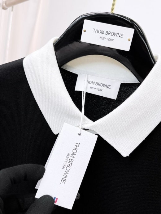 톰브라운 언발배색 PK니트 반팔 티셔츠 블랙 남여공용(1컬러)