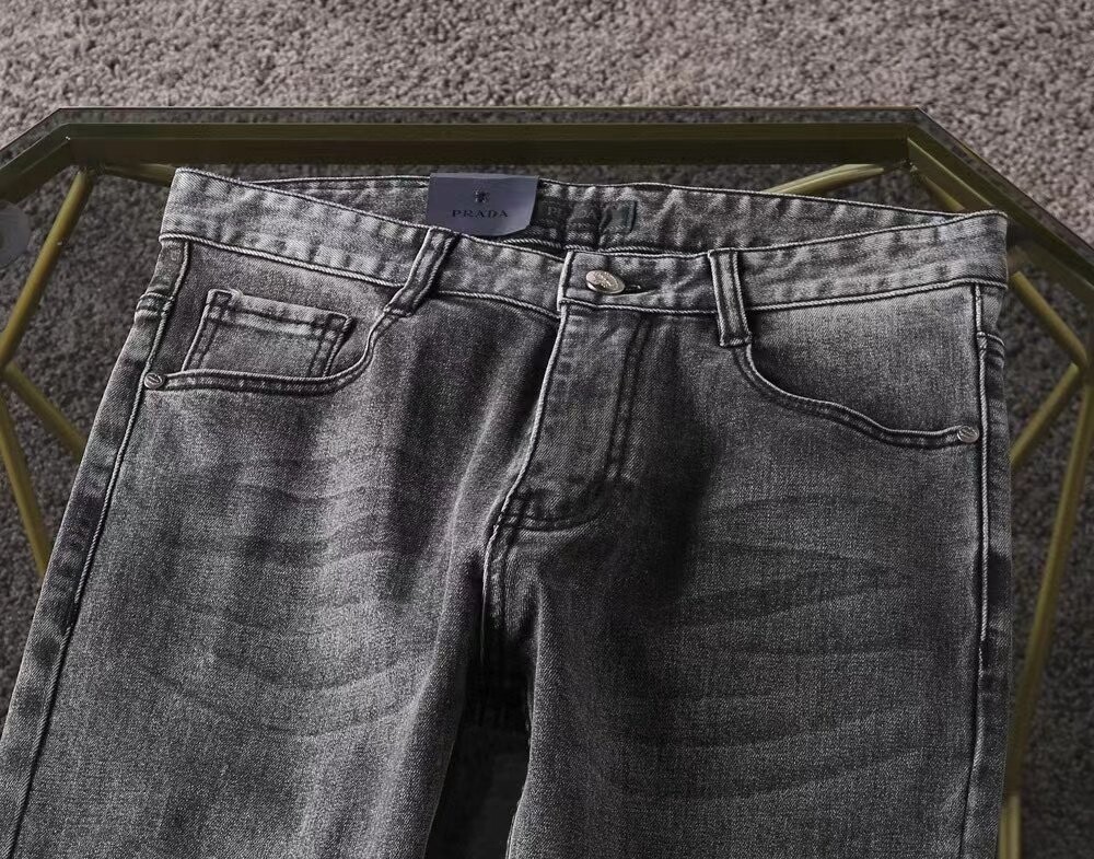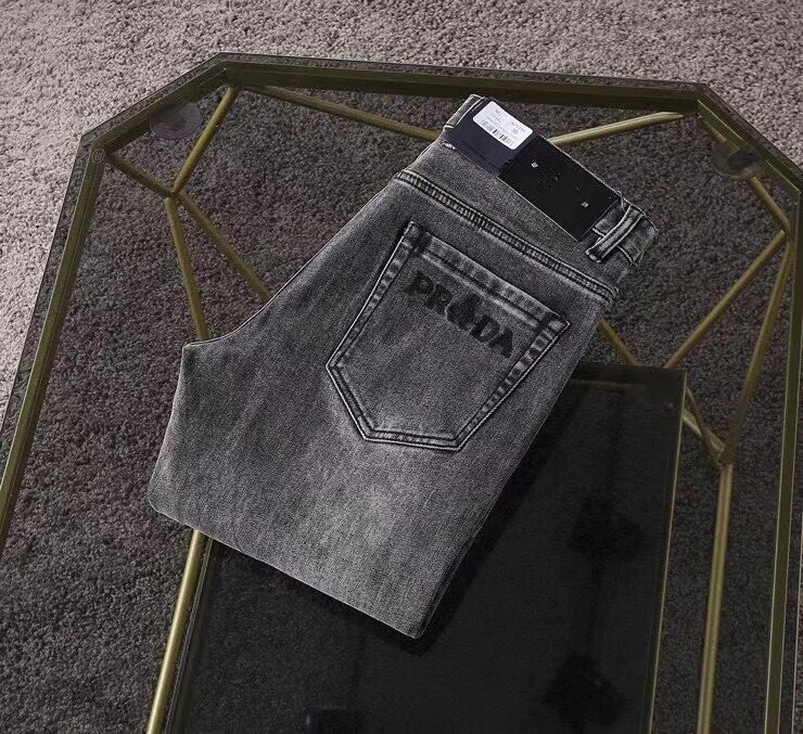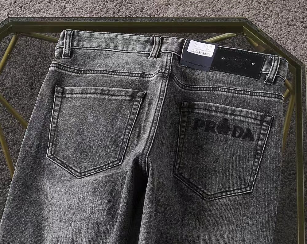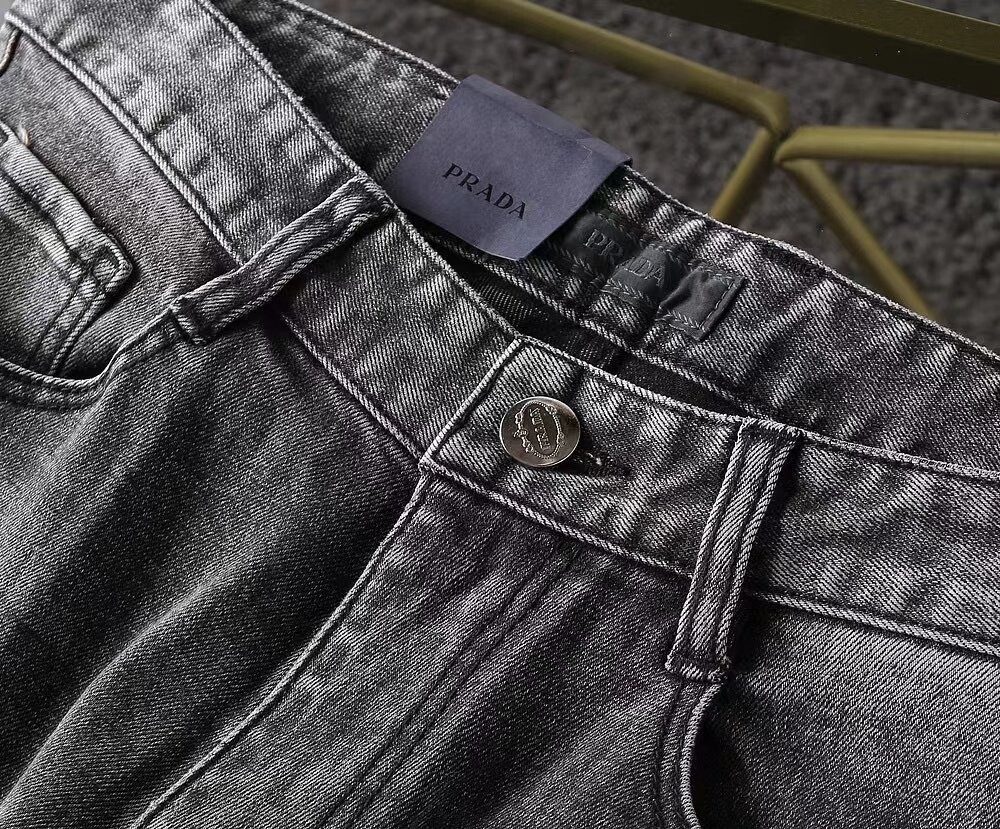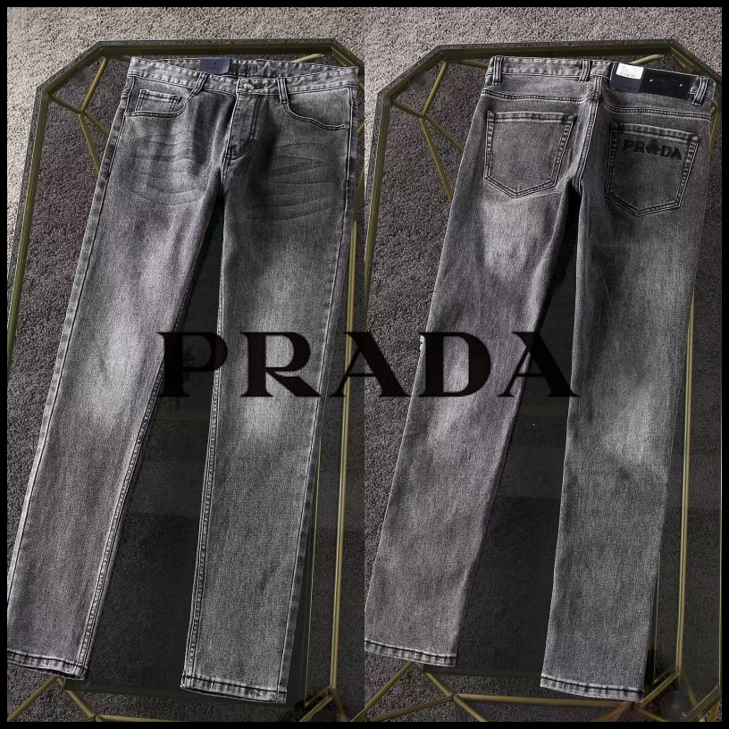 프라다 프리미엄 뒷포켓 벨보이자수 로고 루즈핏 데님팬츠 남성용(1컬러)