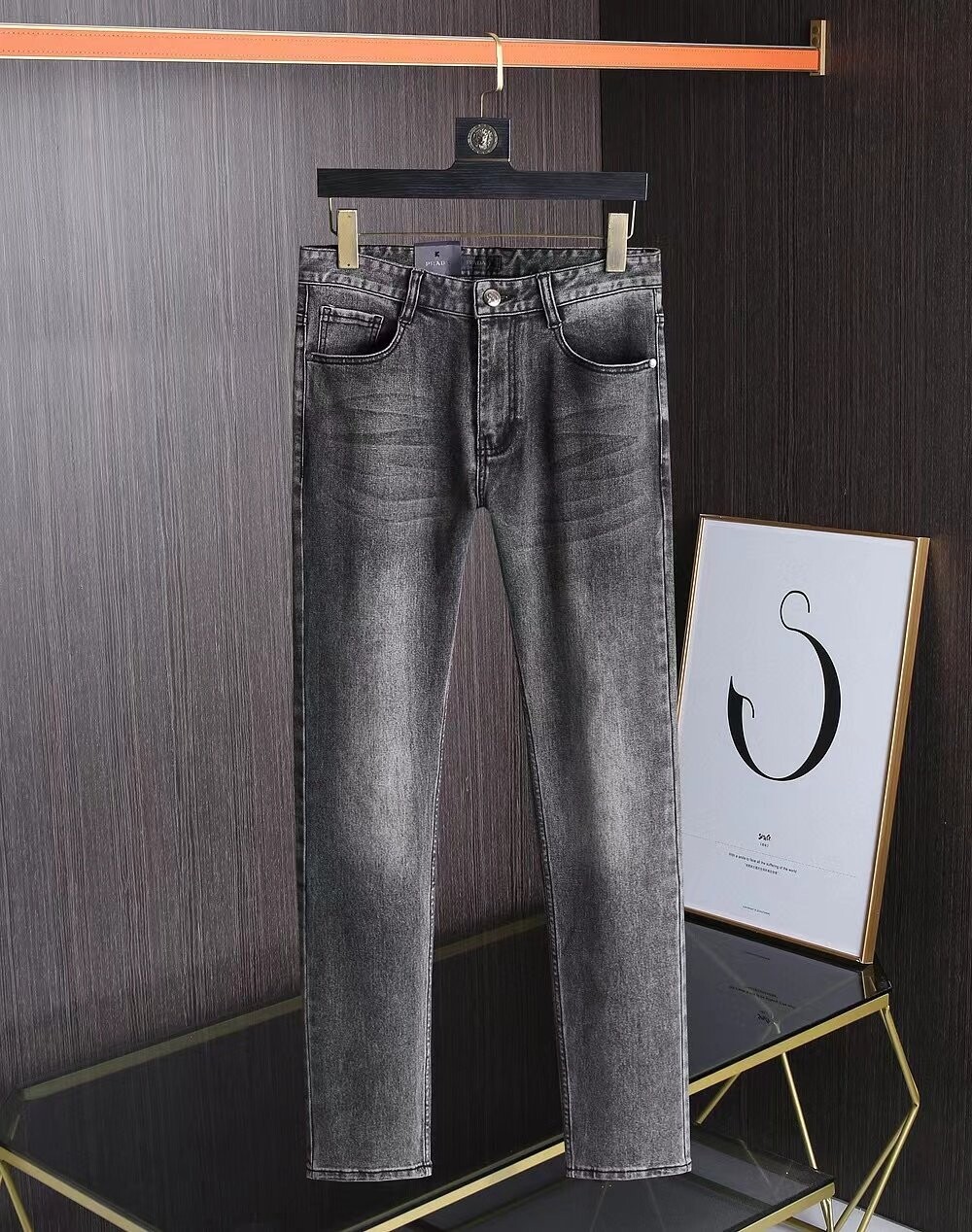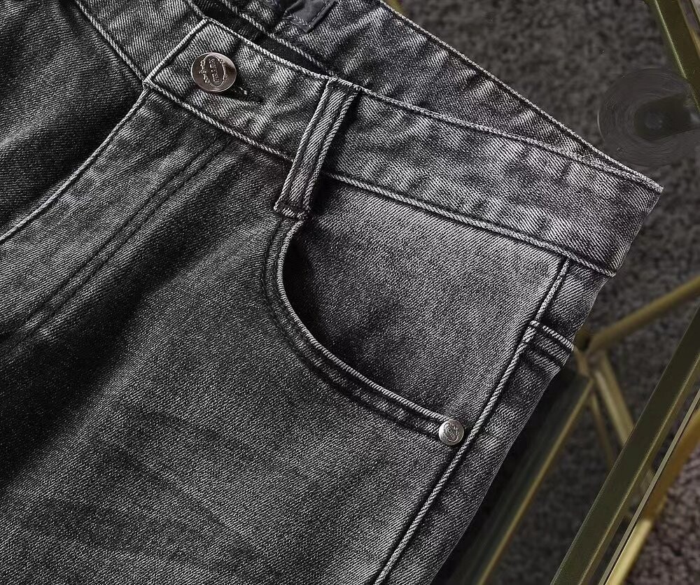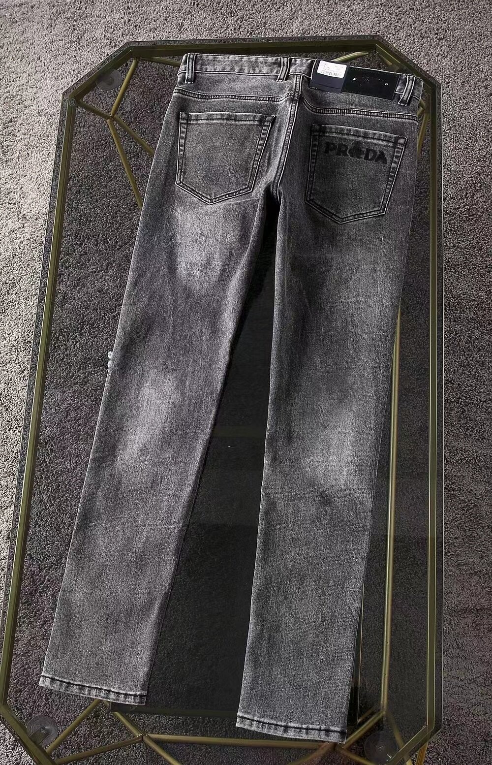 프라다 프리미엄 뒷포켓 벨보이자수 로고 루즈핏 데님팬츠 남성용(1컬러)