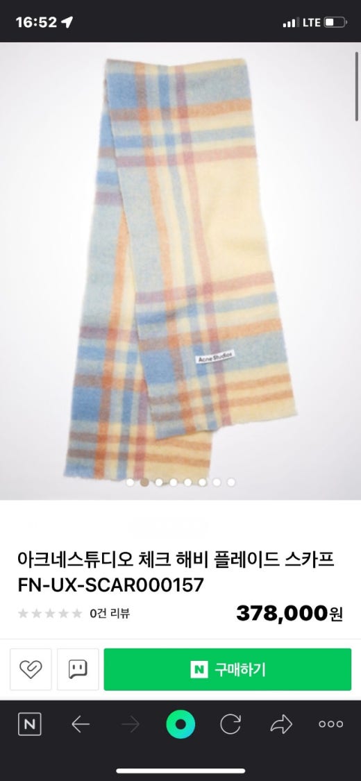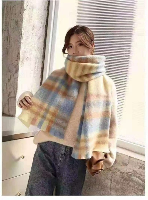 아크네 해비 플레이드 머플러 크림스카이 남여공용(1컬러)