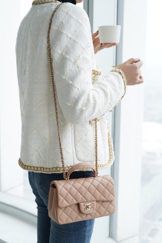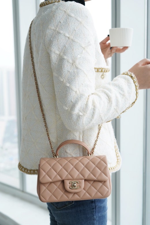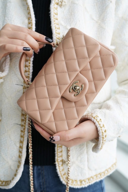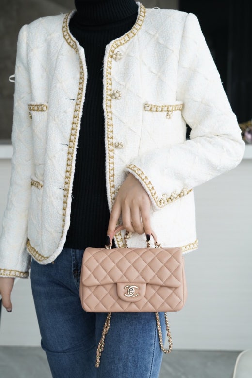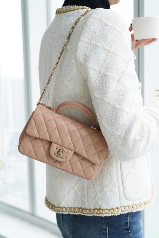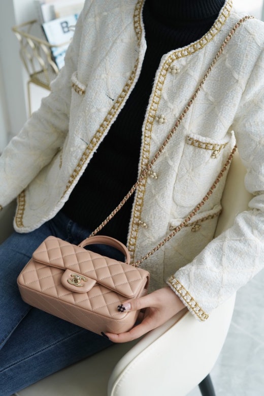 샤넬 뉴미니 탑핸들 플랩백 금장 여성용(1컬러) 📢해외