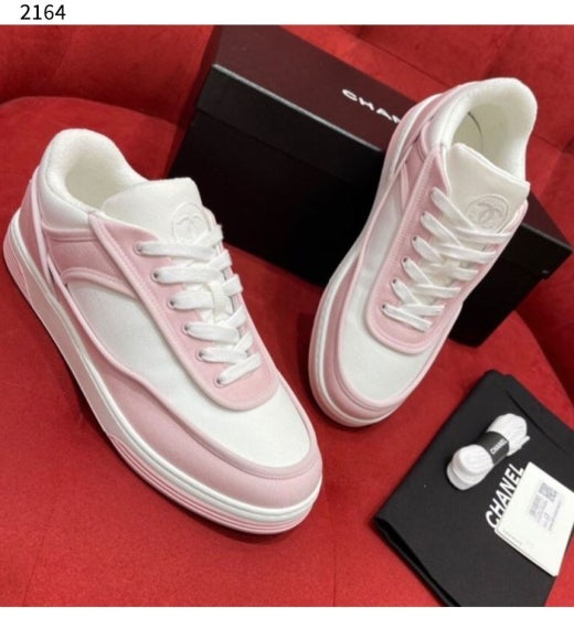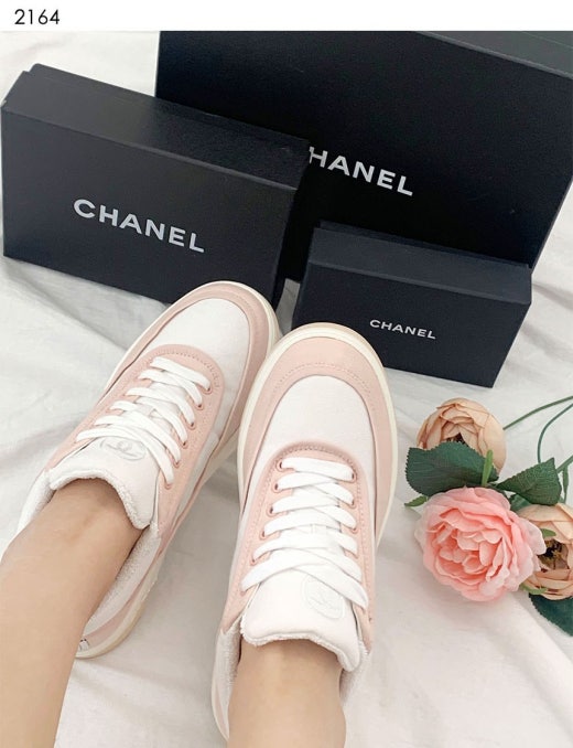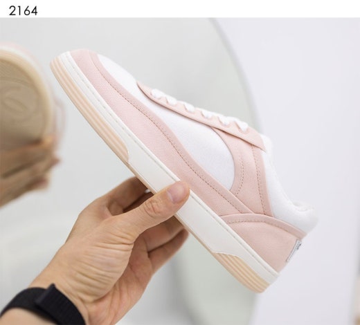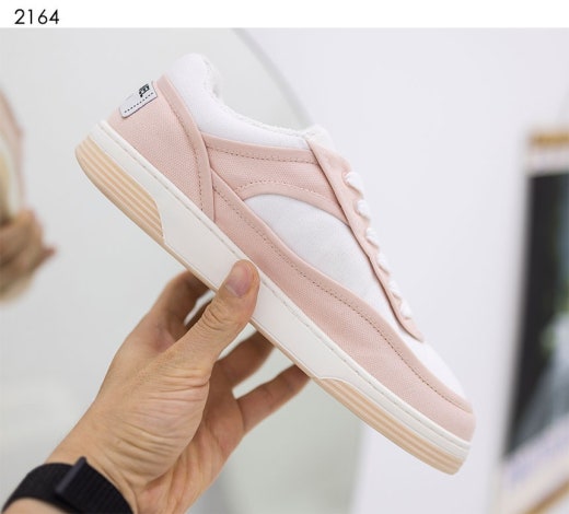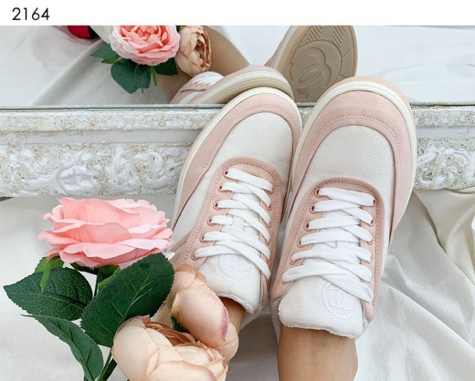샤넬 CC 백 로고 라벨 테니스 범고래 스니커즈 핑크 여성용(1컬러)