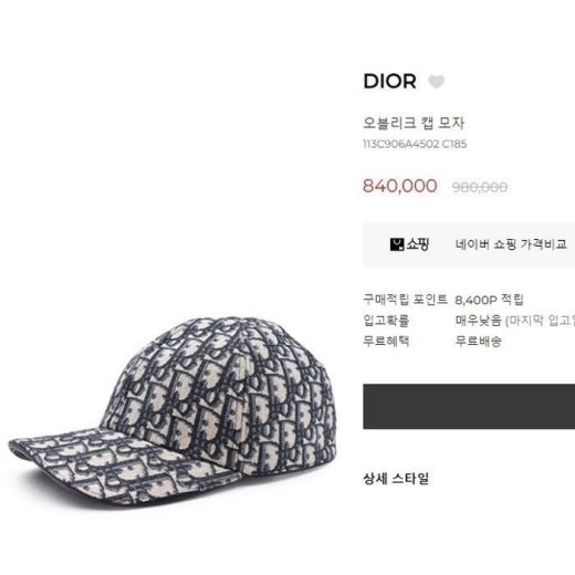 디올 오블리크 볼캡 남여공용(1컬러)
