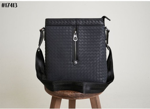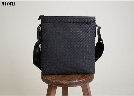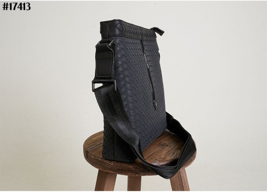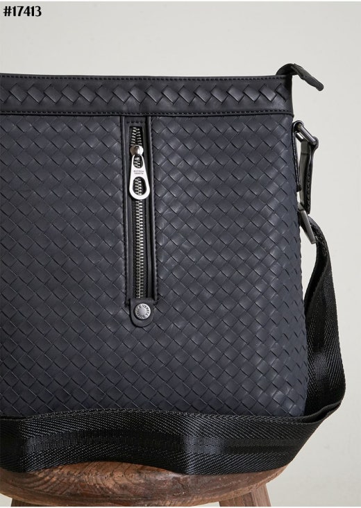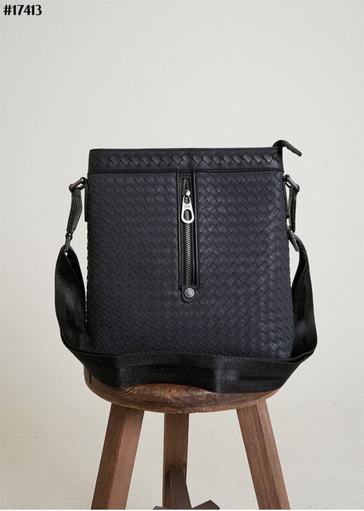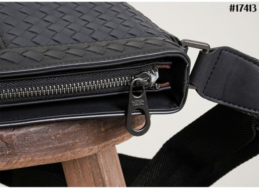 보테가베네타 인트레치아토 지퍼 스퀘어 크로스백 블랙 남성용(1컬러)