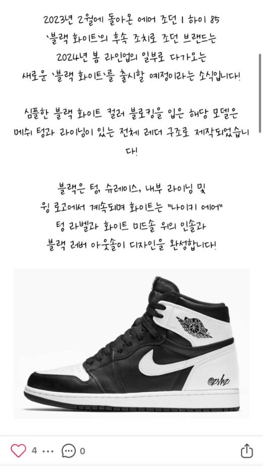 나이키 조던1 하이 OG 리버스 팬더 화이트블랙 남여공용(1컬러) 🅱️빅사이즈