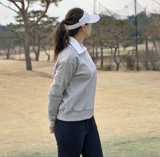 👉하프집 스타일의 와이드 에리 긴팔 티셔츠