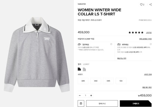 PXG 매.장.판 우먼 윈터 와이드 카라 LS 티셔츠 그레이 여성용(1컬러)