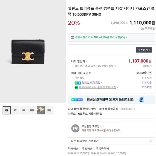 셀린느 트리옹프 동전 컴팩트 지갑 블랙 여성용(1컬러) ⚓130