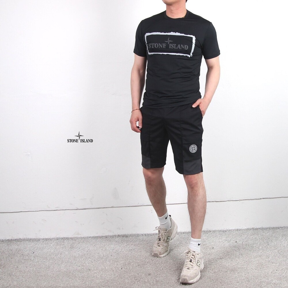 스톤아일랜드 빅로고셔츠 & 절개팬츠 5부세트 남성용(2컬러)