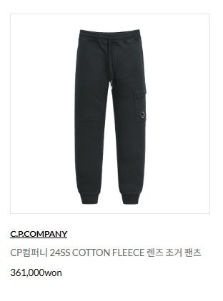 CP컴퍼니 벨크로 포켓렌즈 & 플릭스 조거팬츠 SET 남성용(2컬러)