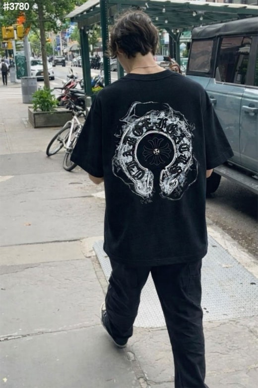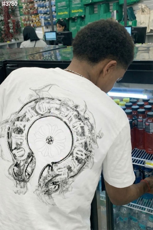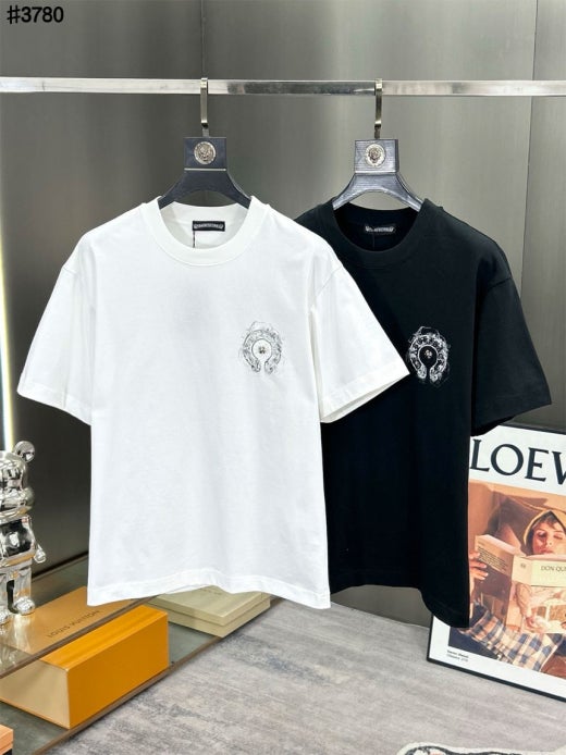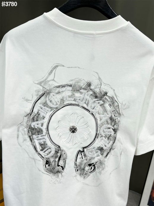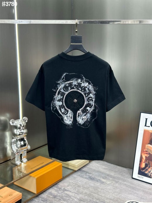 크롬하츠 빈티지 스모크 홀스슈 스틸 로고 숏 슬리브 티셔츠 남여공용(2컬러)