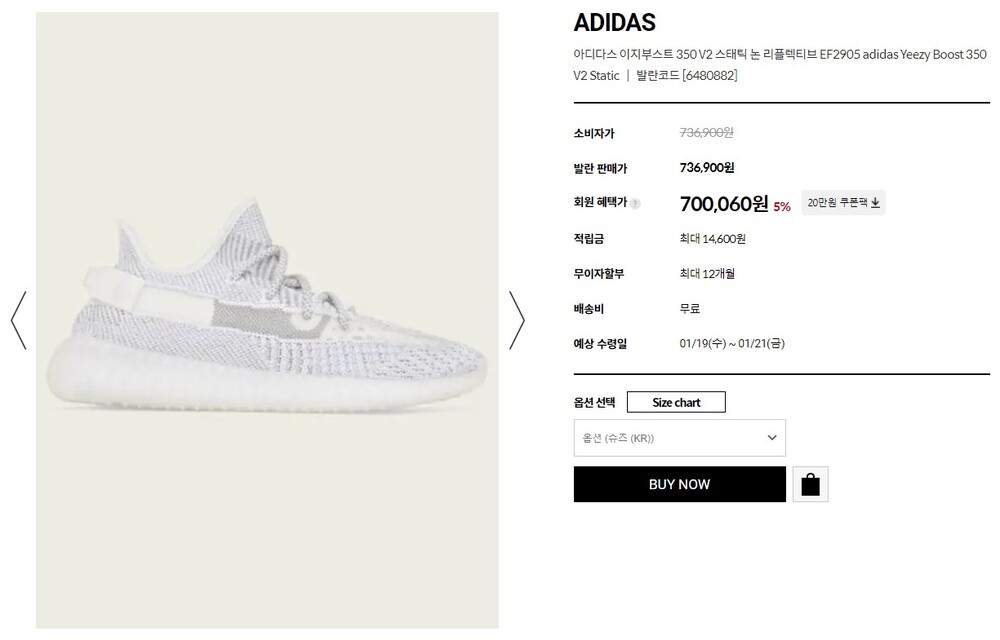 아디다스 이지부스트 350 V2 스태틱 논 리플렉티브 남여공용(1컬러)