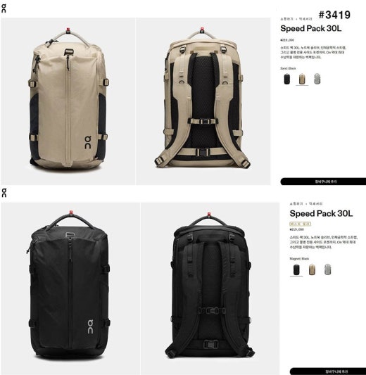 온 러닝 스피드 팩 30L 백팩 남여공용(2컬러)
