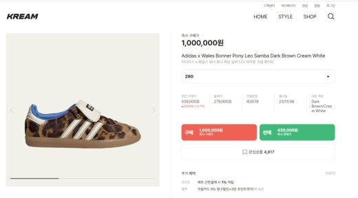 아디다스 x WalesBonner 포니 레오 삼바 다크브라운 레오파드 여성용(1컬러)