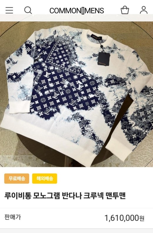 루이비통 청판 맨투맨 티셔츠 남여공용(1컬러)