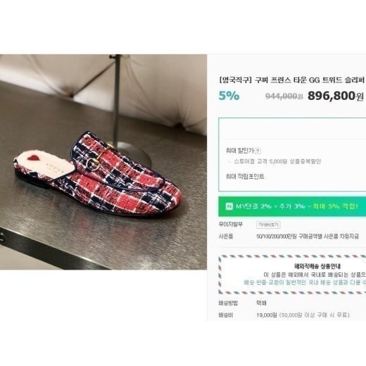구찌 프린스 타운 GG 트위드 슬리퍼 레드 여성용(1컬러)