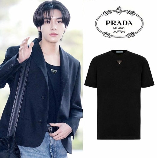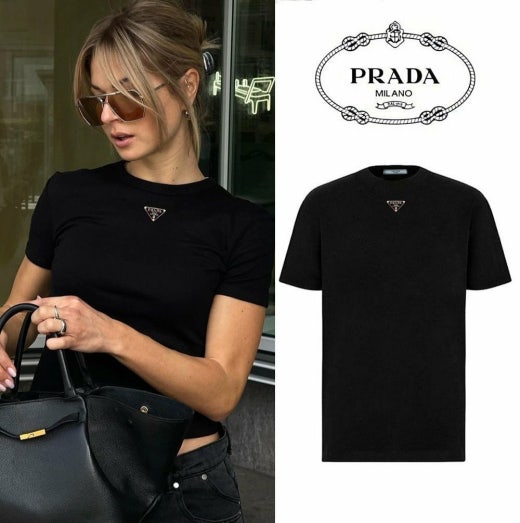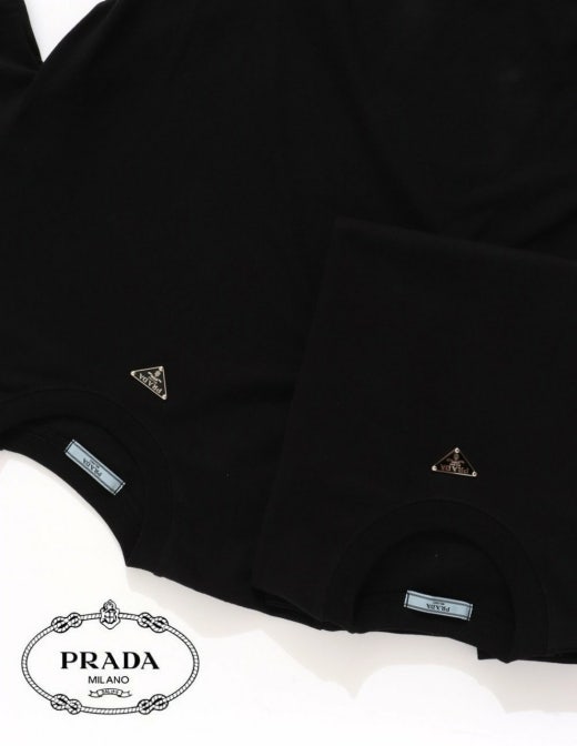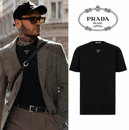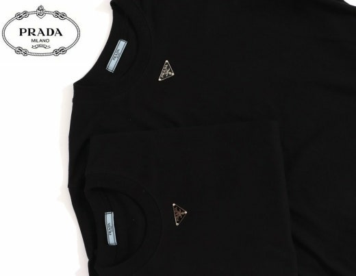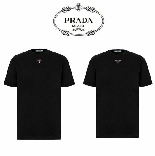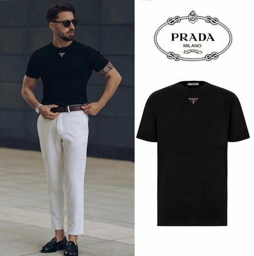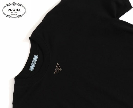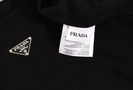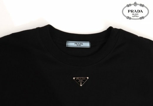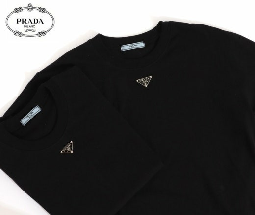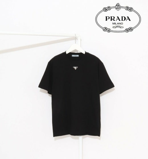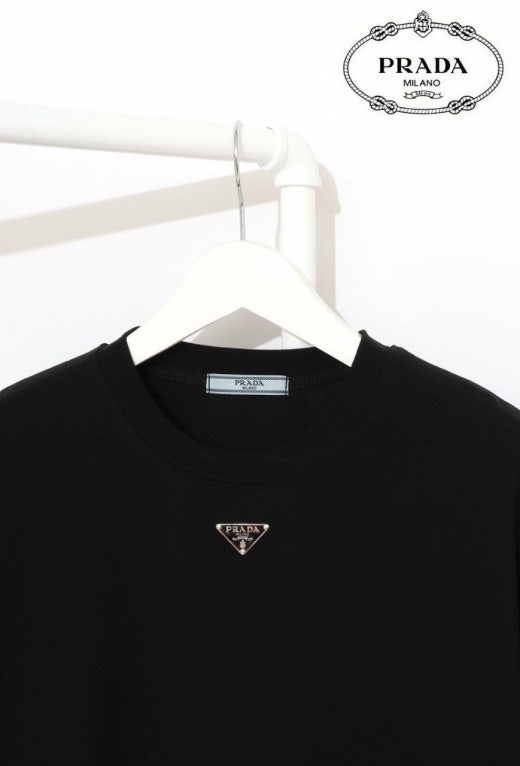 프라다 트라이앵글 넥플레이트 반팔티셔츠 블랙 남여공용(1컬러)