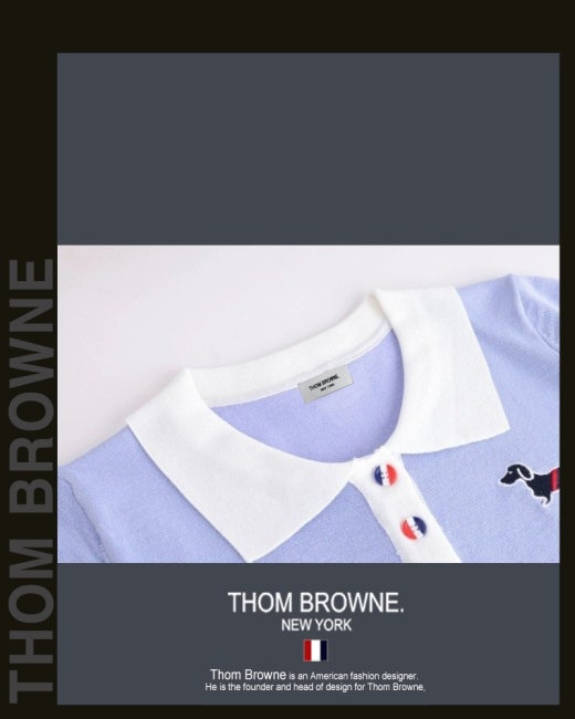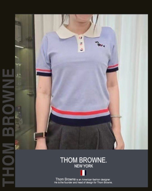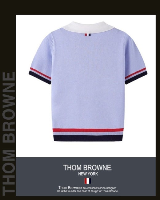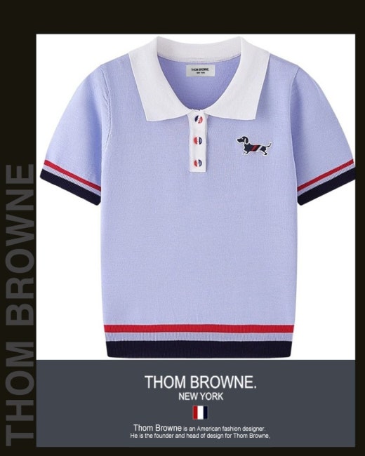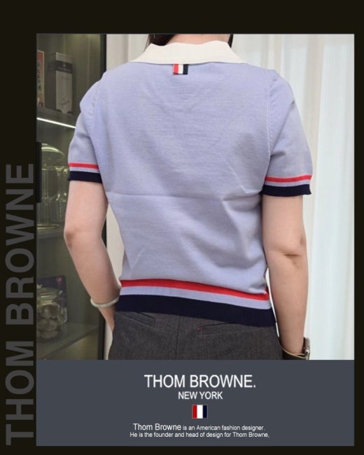 톰브라운 바이올렛 배색 헥터 카라 반팔 니트 여성용(1컬러)
