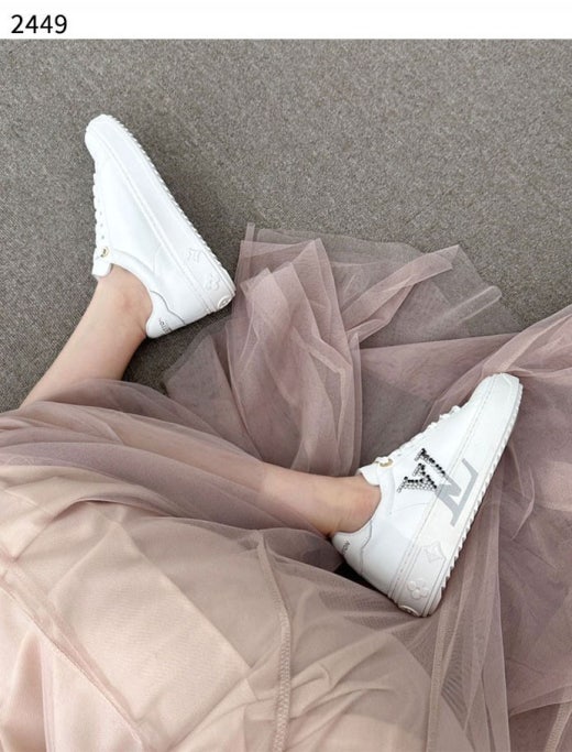 👉 크리스탈을 수놓아 완성한 옆면의 LV 이니셜이 시선을 사로잡는 스니커즈.