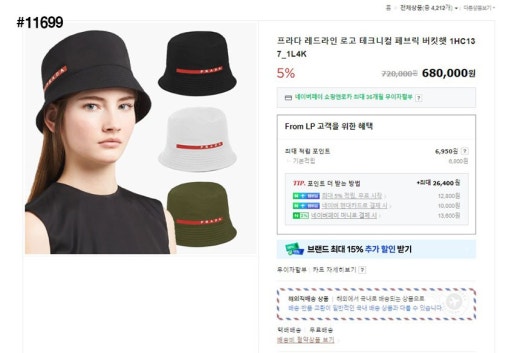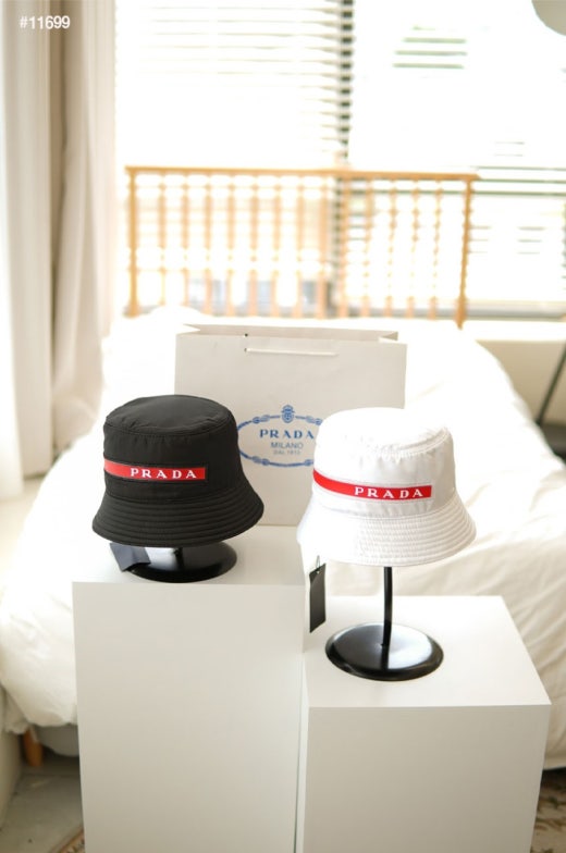 프라다 레드라인 로고 테크니컬 페브릭 버킷햇 남여공용(2컬러)