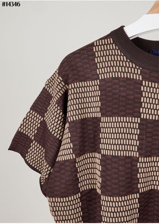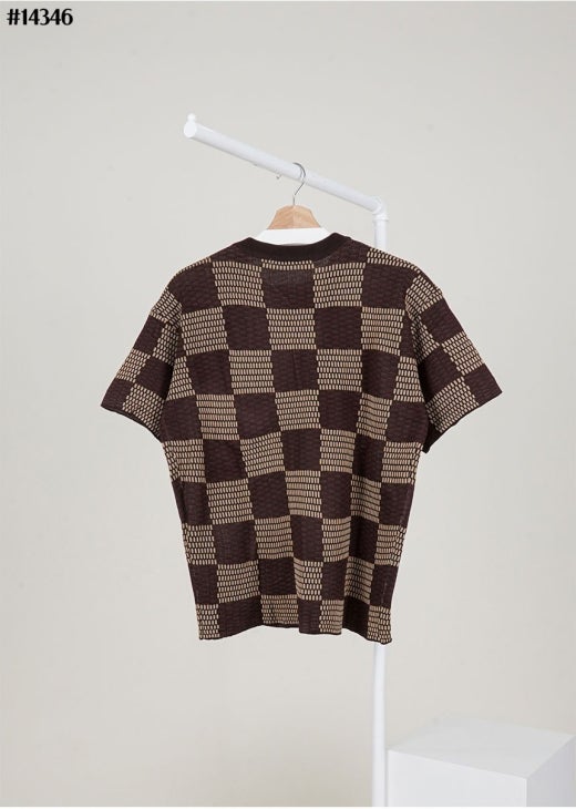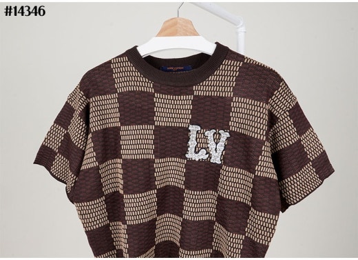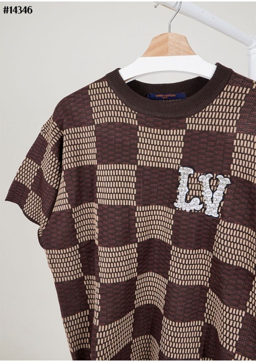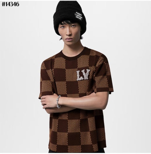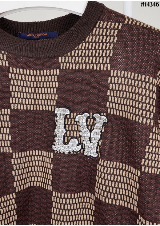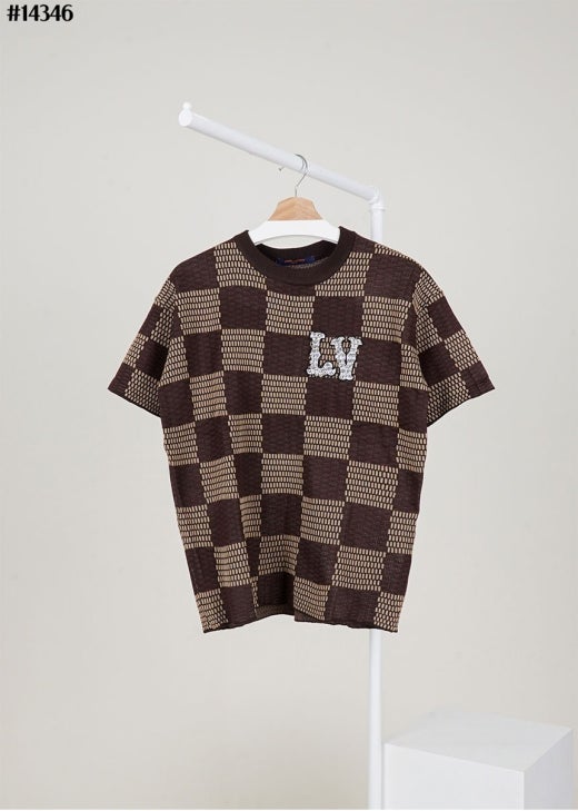 루이비통 크리스탈 LV 다미에 쇼트 슬리브드 코튼 티셔츠 브라운 남성용(1컬러)