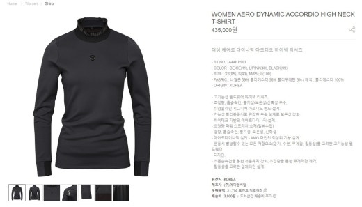 어메이징크리 매.장.판 에어로 다이나믹 아코디오 하이넥 티셔츠 블랙 여성용(1컬러)