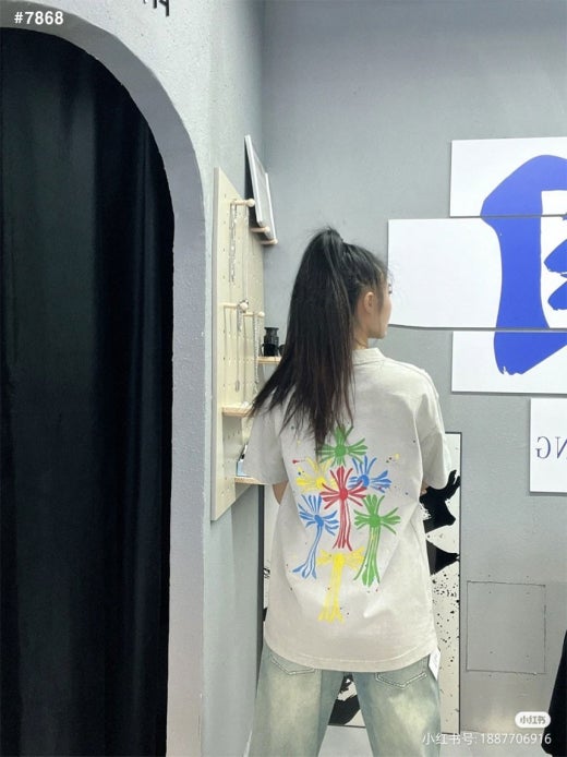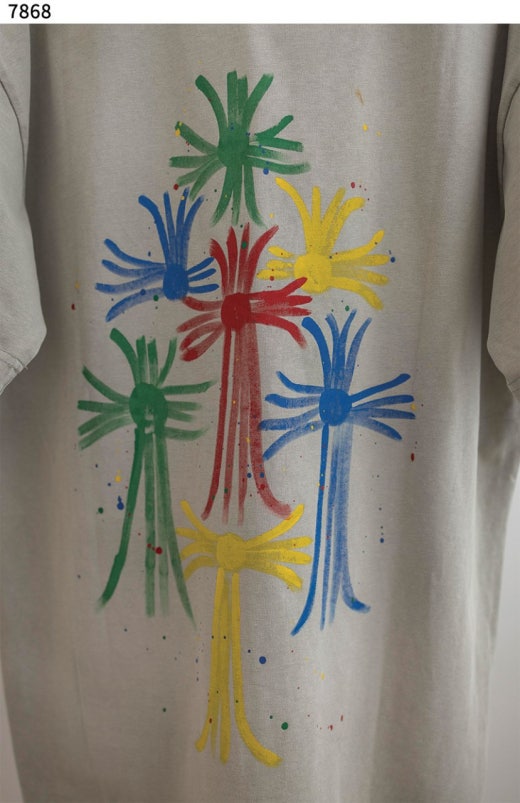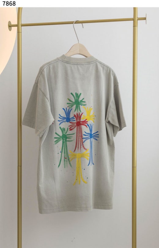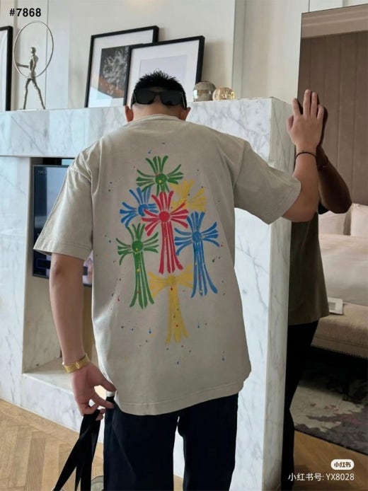 크롬하츠 컬러 십자가 반팔 티셔츠 카키베이지 남여공용(1컬러)