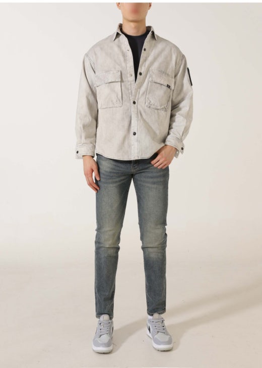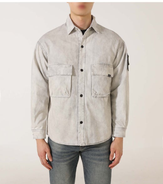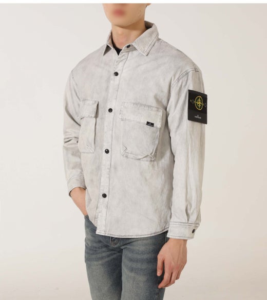 스톤아일랜드 와펜 패치 투포켓 셔츠 & 자켓 연그레이 남성용(1컬러)