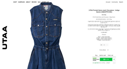 유타 매.장.판 포켓 헨리넥 원피스 여성용(1컬러)