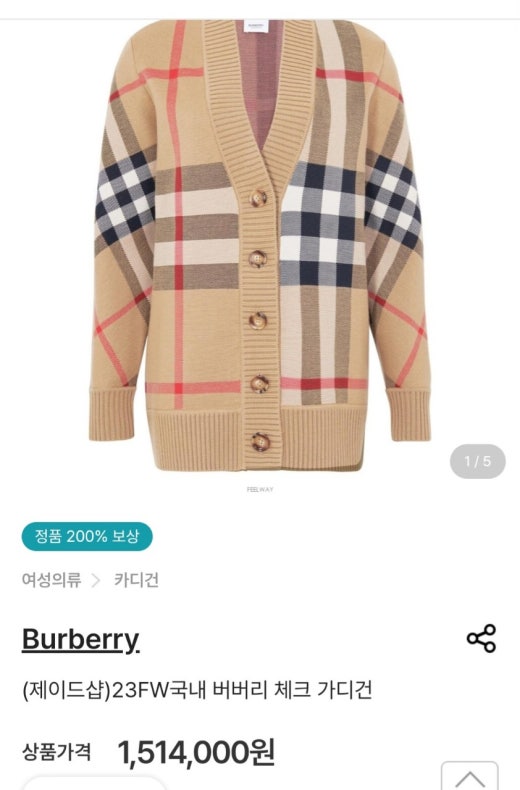 버버리 롱슬리브 오버핏 가디건 남여공용(1컬러)