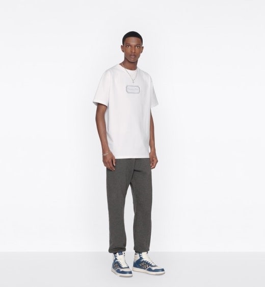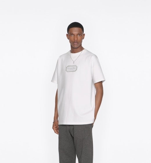 디올 로고자수 라운드 티셔츠 화이트 남여공용(1컬러)