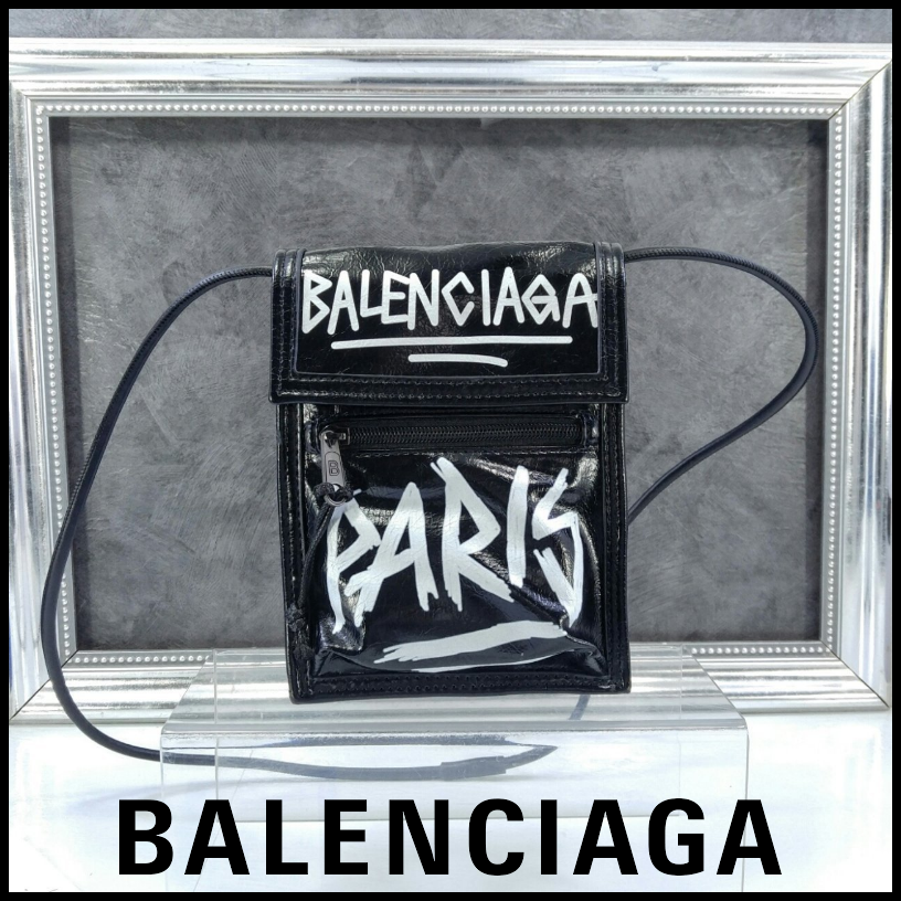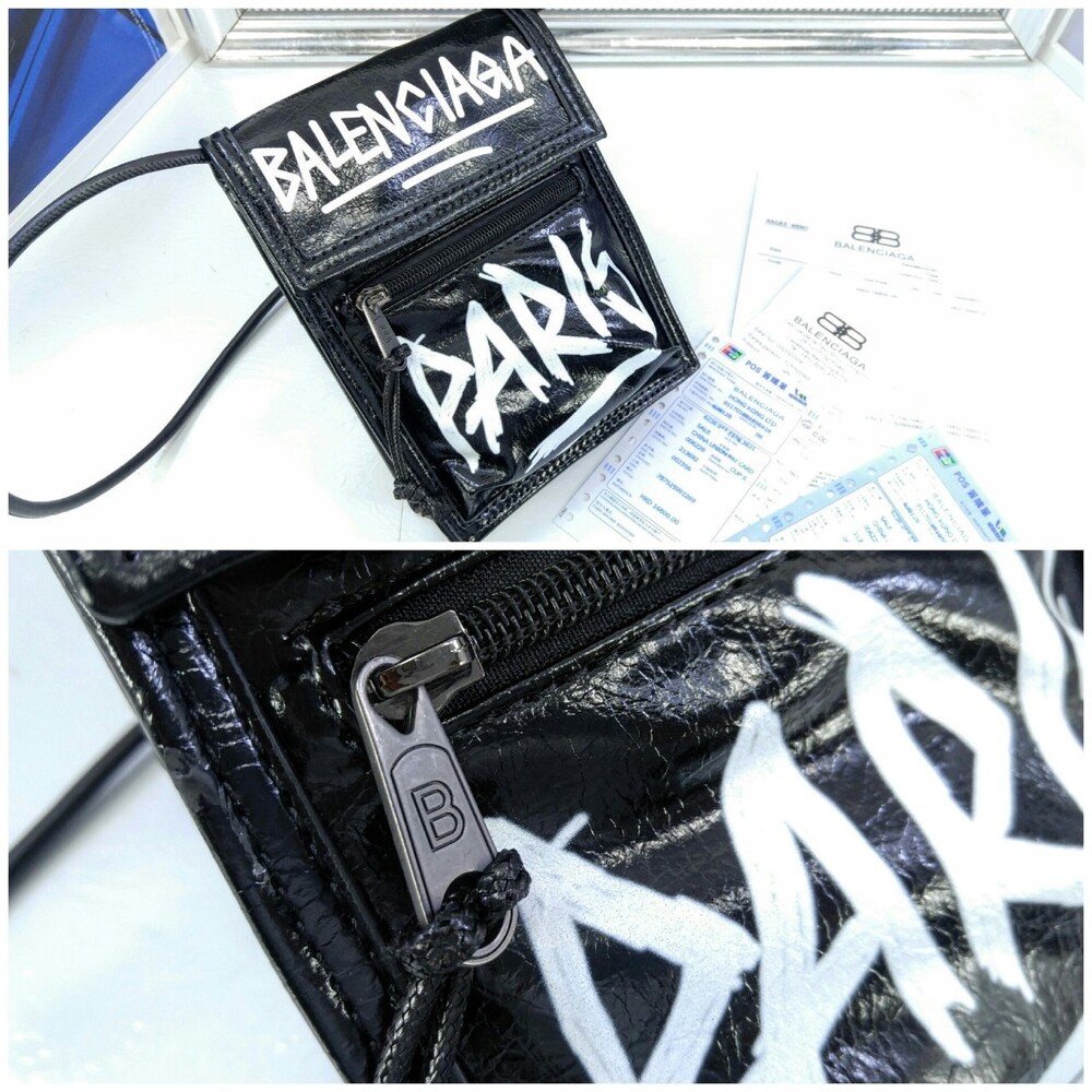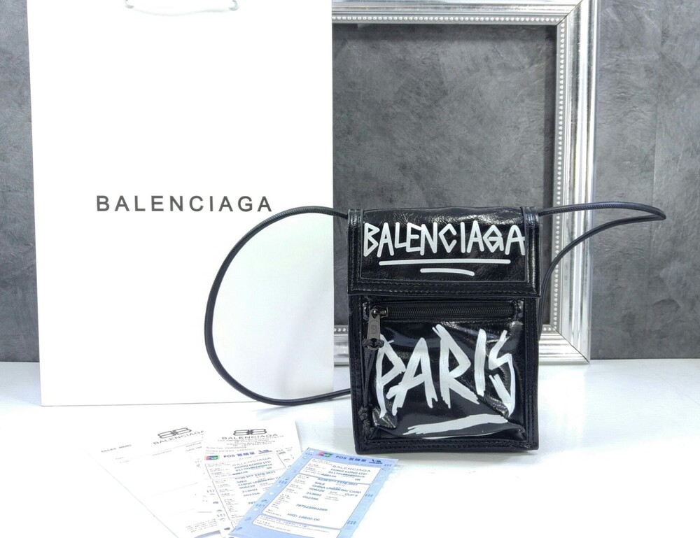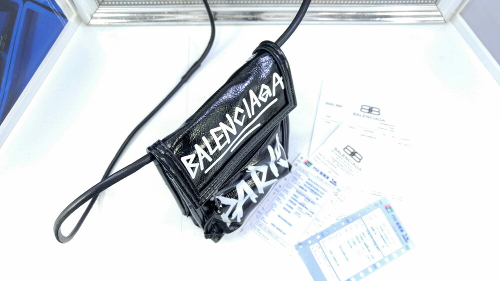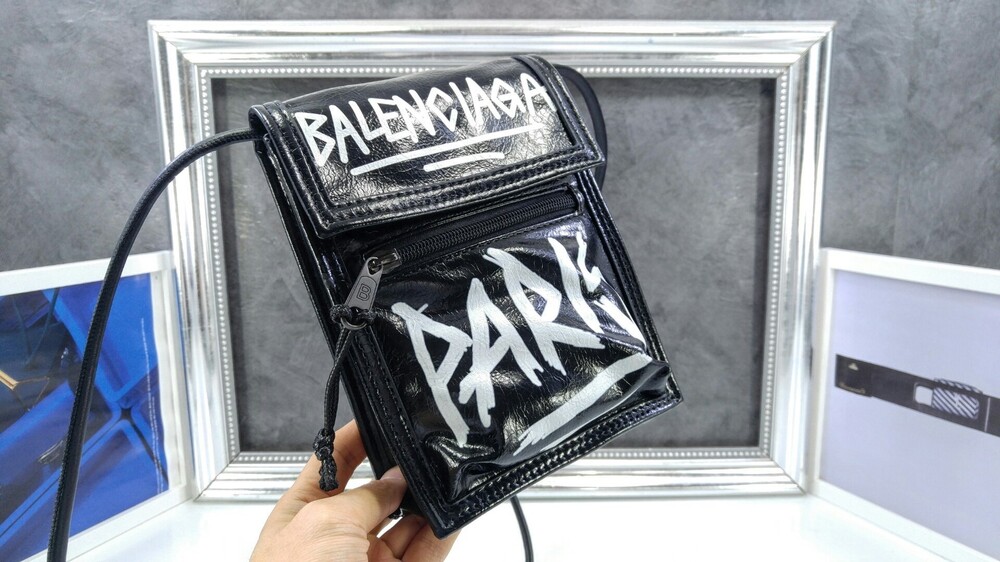 발렌시아가 블랙 그레인드 카프스킨 EXPLORER 스케치 스몰 스트랩 파우치 남여공용(1컬러)