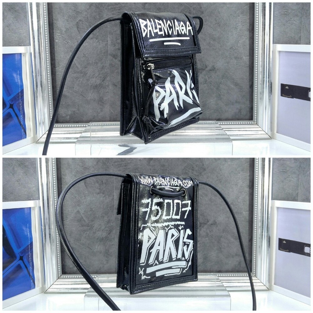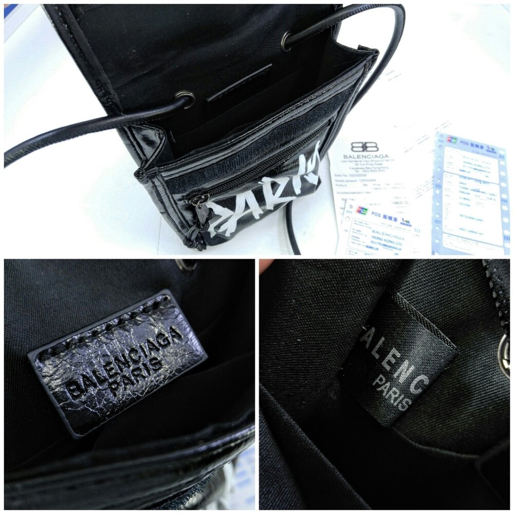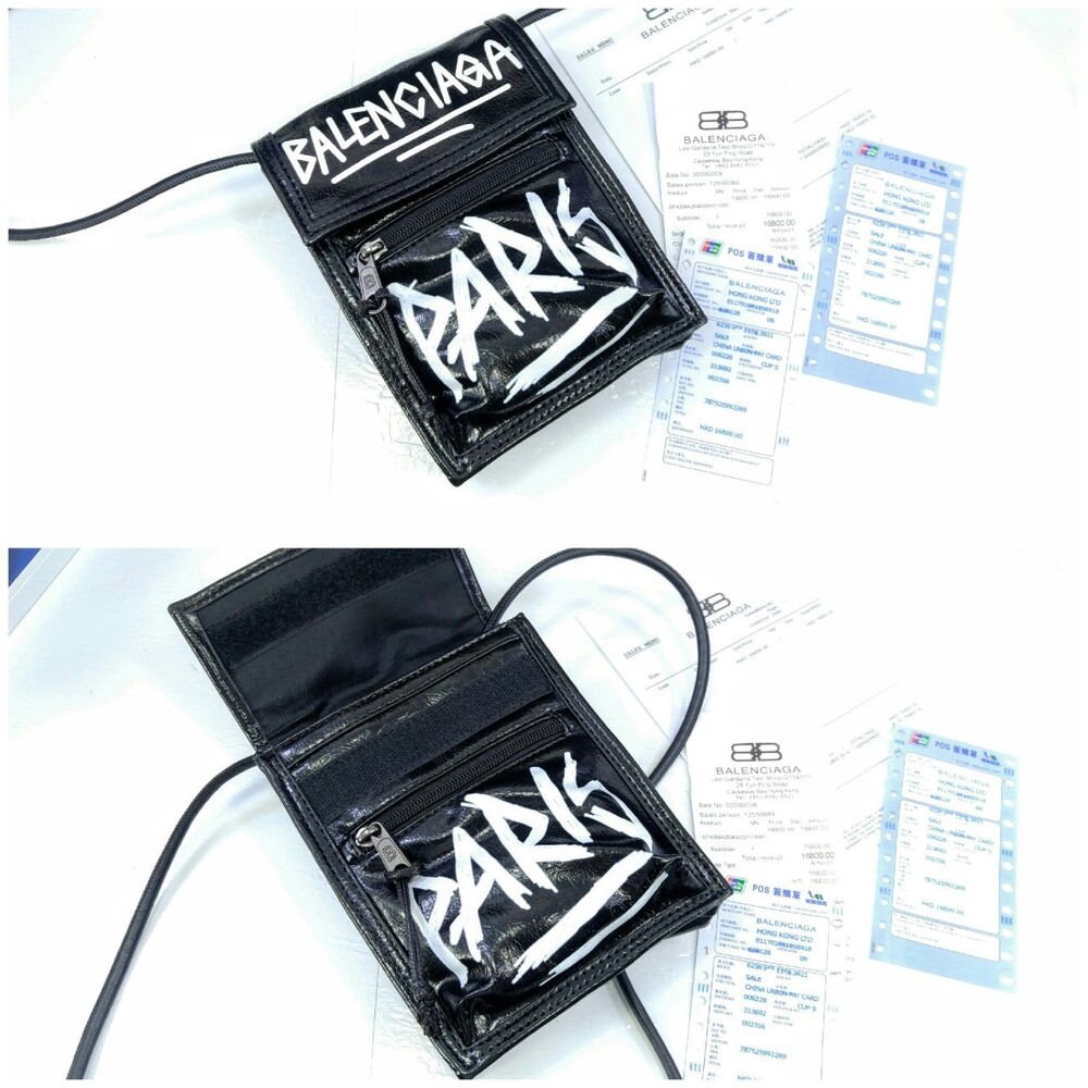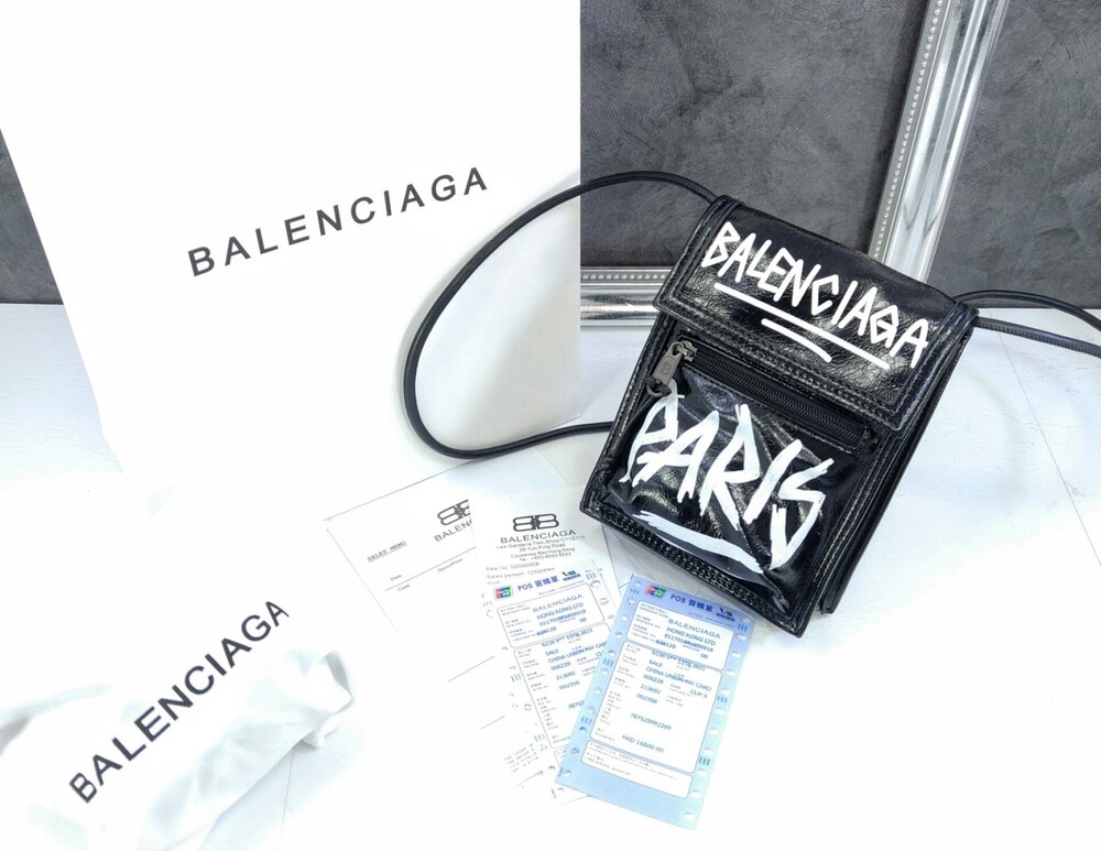 발렌시아가 블랙 그레인드 카프스킨 EXPLORER 스케치 스몰 스트랩 파우치 남여공용(1컬러)