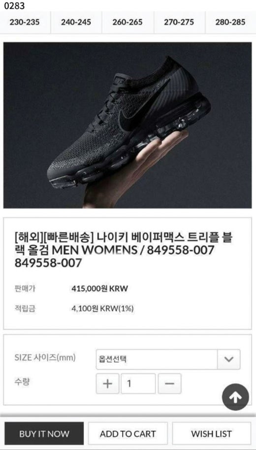 나이키 베이퍼맥스 Nike Air VaporMax Flynit 블랙 남여공용(1컬러)