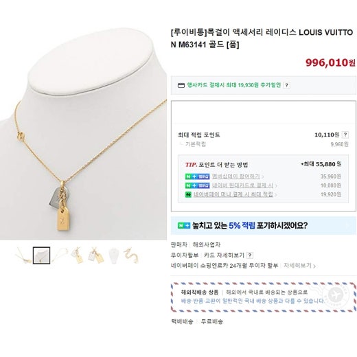 루이비통 나노그램 목걸이 여성용(1컬러)