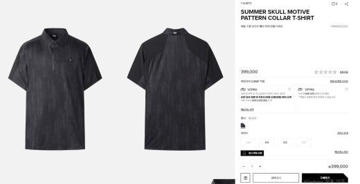PXG 매.장.판 맨즈 스컬 모티브 패턴 카라 반팔 티셔츠 블랙 남성용(1컬러)