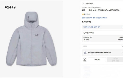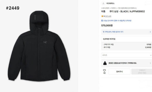 아크테릭스 아톰 헤비웨이트 후드 패딩 자켓 남성용(2컬러)