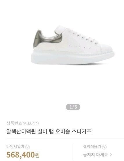 알렉산더 맥퀸 오버솔 스니커즈 화이트/실버 남여공용(1컬러)