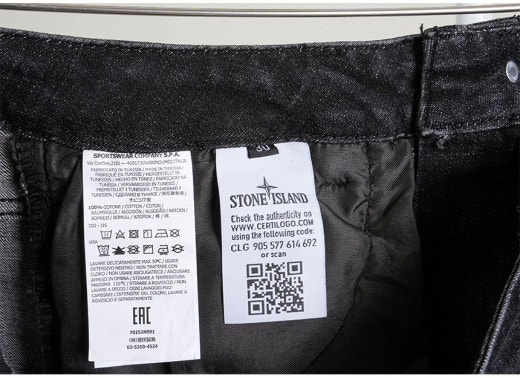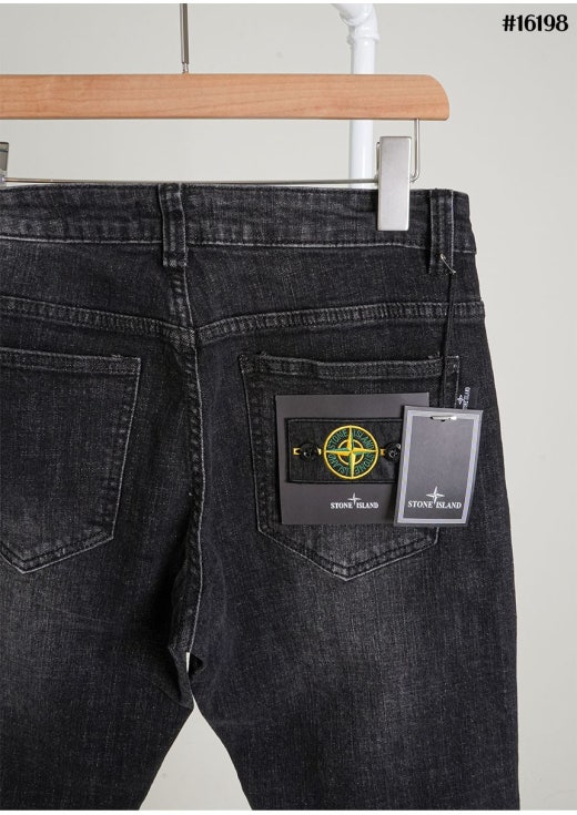 스톤아일랜드 스퀘어 포켓 와펜 패치 슬림핏 워싱 데님 팬츠 흑청 남성용(1컬러)